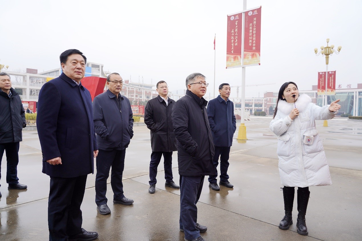 1月17日上午,中共河南省委军民融合发展委员会办公室常务副主任唐远游、副主任孙岗、秘书处处长于红兵、科技教育处处长闫戈、政治部副主任张兆军一行5人莅临我校调研并指导工作。校领导温道军、王伟、杜建根、王