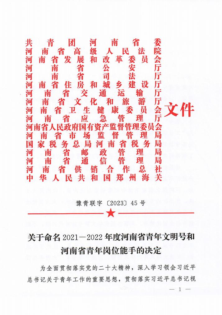 近日,共青团河南省委公布《关于命名2021—2022年度河南省青年文明号和河南省青年岗位能手的决定》,我校自动化工程学院张华文老师荣获“2021—2022年河南省青年岗位能手”荣誉称号。根据《河南省青