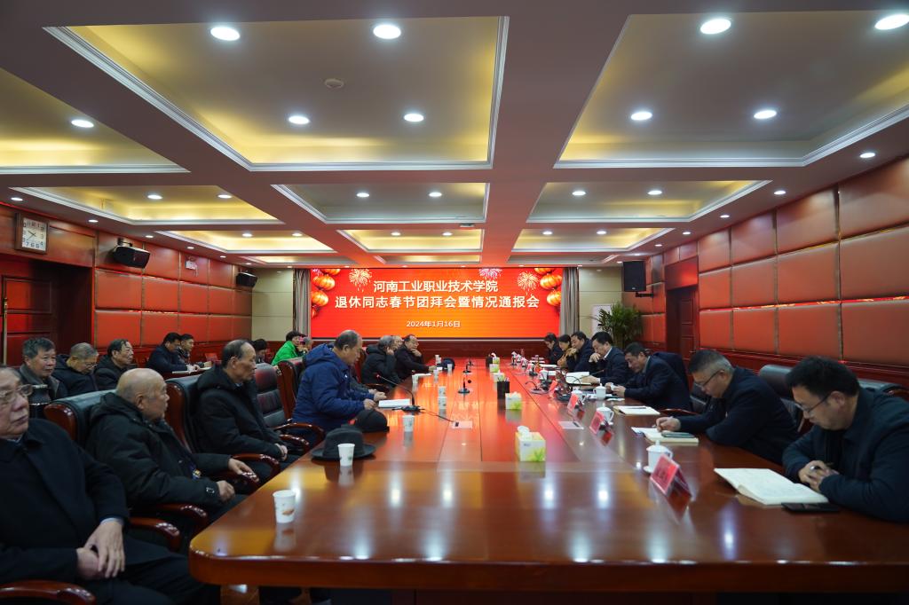 1月16日,学校在孔明路校区行政楼四楼会议室召开退休同志春节团拜会暨情况通报会。党委书记温道军、校长王伟、副校长樊有平出席会议,学校党政办公室、党委组织部、党委宣传部、党委教师工作部、后勤服务中心、校