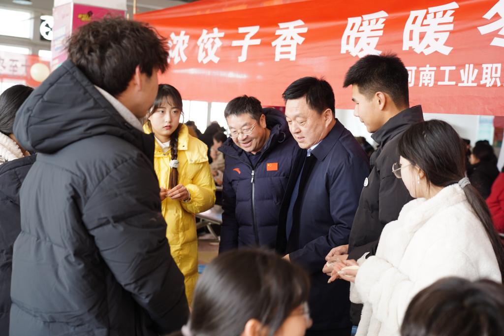 为弘扬中华民族传统节日,传递冬日温暖,12月22日,校学生会等学生组织开展“浓浓饺子香,暖暖冬至情”主题文化活动,学校党委书记温道军亲切慰问,党委副书记、工会主席王仁伟应邀参加,校团委相关负责同志,以