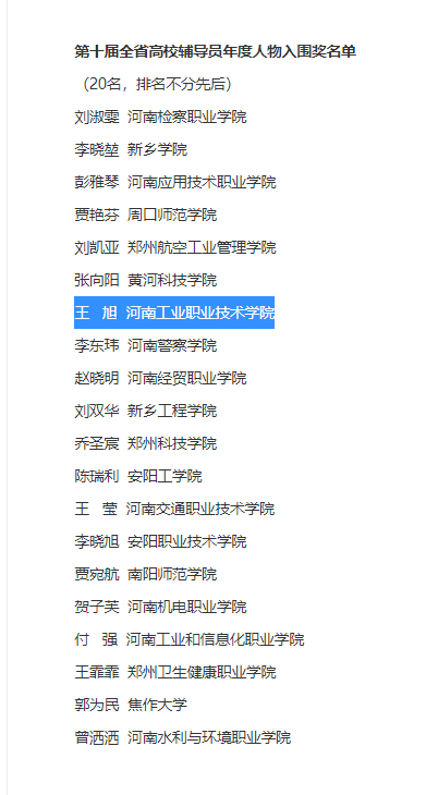 【喜报】我校辅导员王旭荣获“河南省高校辅导员年度人物”入围奖