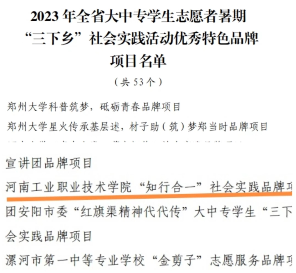 【喜报】我校“知行合一”社会实践品牌项目荣获省三下乡社会实践优秀特色品牌项目