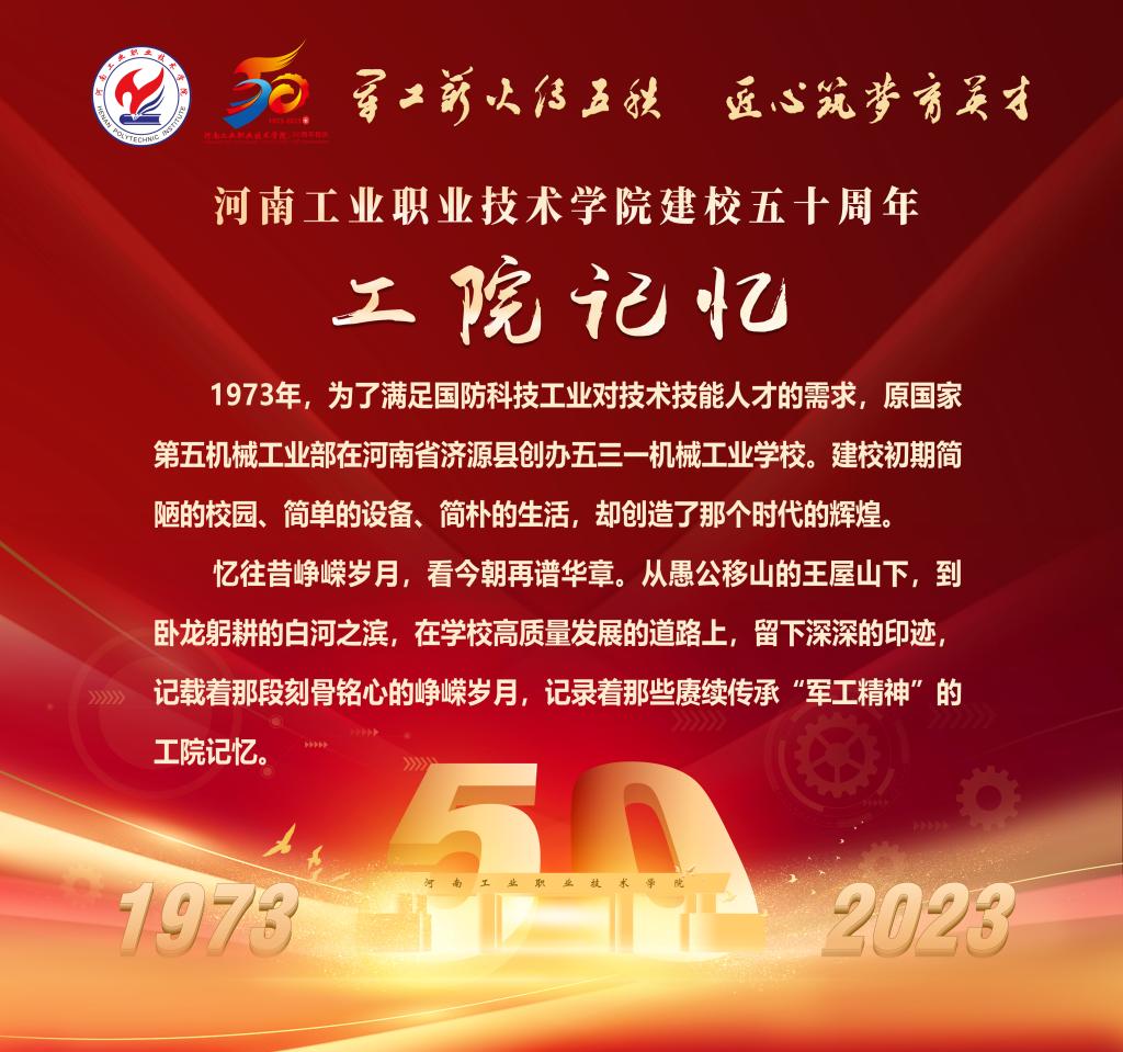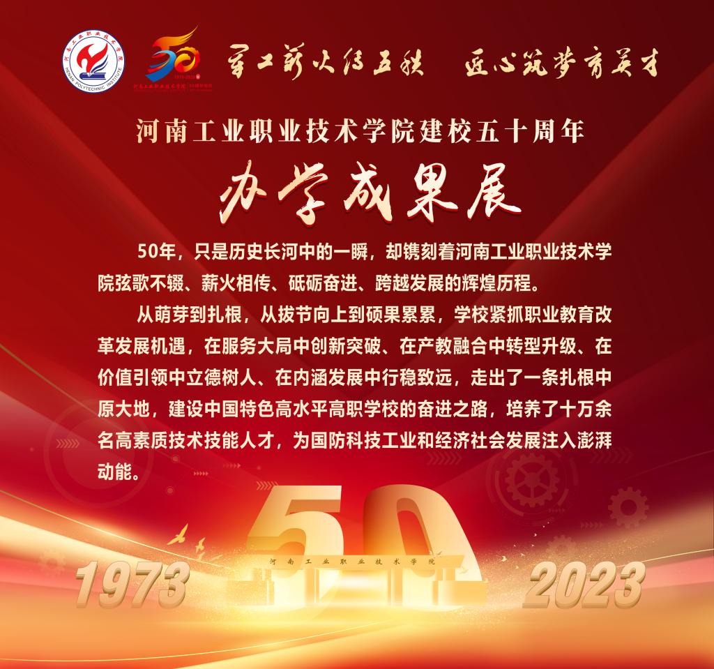 编者按:50年,只是历史长河中的一瞬,却镌刻着河南工业职业技术学院弦歌不辍、薪火相传、砥砺奋进、跨越发展的辉煌历程。从萌芽到扎根,从拔节向上到硕果累累,学校紧抓职业教育改革发展机遇,在服务大局中创新突