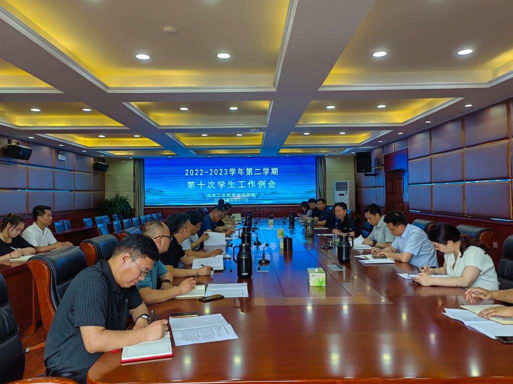 6月27日上午,我校于行政楼四楼会议室召开本学期第十次学生工作例会。副校长屈保中出席并主持会议,学生处、教务处、团委、保卫处、心理健康教育中心、后勤服务中心负责人以及各学院(中心)党总支书记、副书记参