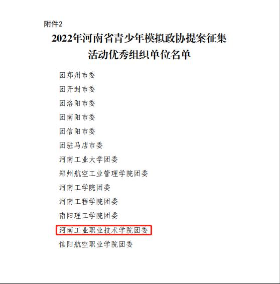 为表扬优秀、激励典型,共青团河南省委、河南省学生联合会决定对在2022年河南省青少年参加全国模拟政协提案征集活动中表现突出和取得优异成绩的单位及个人予以通报表扬,我校在2022年河南省青少年模拟政协提