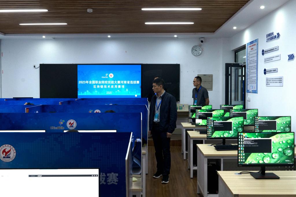 技能铸就梦想,奋斗出彩人生。5月26日,2023年全国职业院校技能大赛河南省选拔赛“区块链技术应用”赛项在我校成功举办,共有来自全省的13所高职院校代表队参赛。本次比赛项目包括区块链产品方案设计及系统