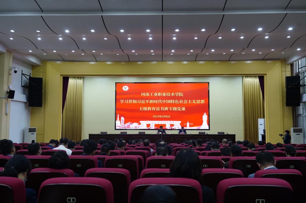5月8日上午,学校学习贯彻习近平新时代中国特色社会主义思想主题教育读书班在大学术报告厅开班,党委书记温道军以《学思践悟新思想,务实担当勇作为,奋力谱写职业教育高质量发展新篇章》为题作开班专题党课,校长
