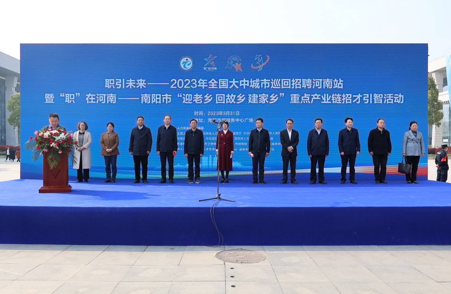 3月31日,职引未来——2023年全国大中城市巡回招聘河南站暨“职”在河南——南阳市“迎老乡 回故乡 建家乡”重点产业链招才引智活动在市民服务中心中区广场举行。学校高度重视,副校长屈保中出席招聘活动启