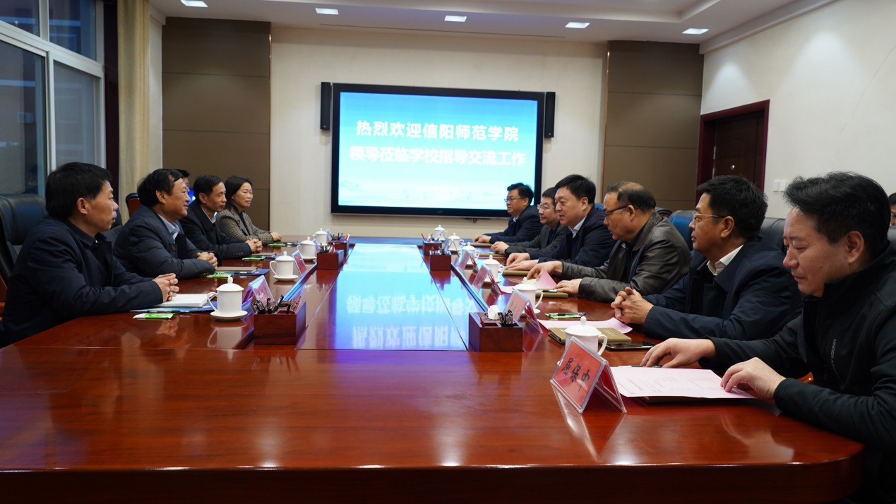3月1日下午,信阳师范学院副校长陈登报、党委副书记岳宗德、党委办公室主任林兴岚、纪委常务副书记刘党英一行4人来我校考察交流工作。校领导温道军、杜建根、王仁伟、贾庆成、李荣胜、屈保中出席。党政办公室、党