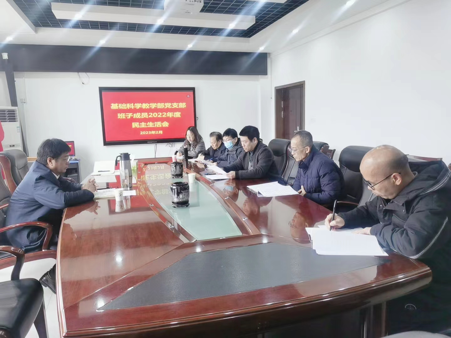 根据学校《2022年度党员领导干部民主生活会实施方案》要求,在认真学习研讨、广泛征求意见、深入谈心谈话的基础上,2月22日上午,基础科学教学部党支部在三楼会议室组织召开了2022年度党员领导干部民主生