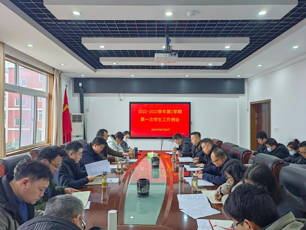 为保证新学期各项工作平稳有序进行,2月9日,我校于行政楼三楼会议室召开本学期第一次学生工作例会。副校长王仁伟出席并主持会议。学生处、教务处、团委、保卫处、心理健康教育中心、后勤服务中心负责人,各学院(