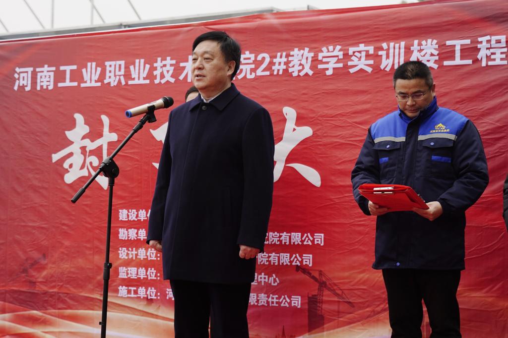 新年伊始、万象更新,1月12日上午,学校新校区扩建工程2#教学实训楼主体封顶仪式在孔明路校区举行,学校党委书记温道军、校长王伟,河南省安装集团有限责任公司副总裁王致祥,河南裕兴诚工程管理中心副总经理刘