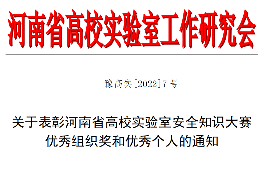 我校荣获河南省第二届高校实验室安全文化宣传月优秀组织奖和安全知识大赛优秀组织奖