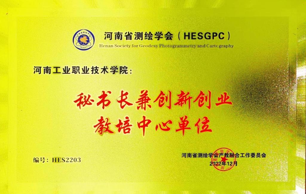 学校入选河南省测绘学会产教融合工作委员会秘书长兼创新创业教培中心单位