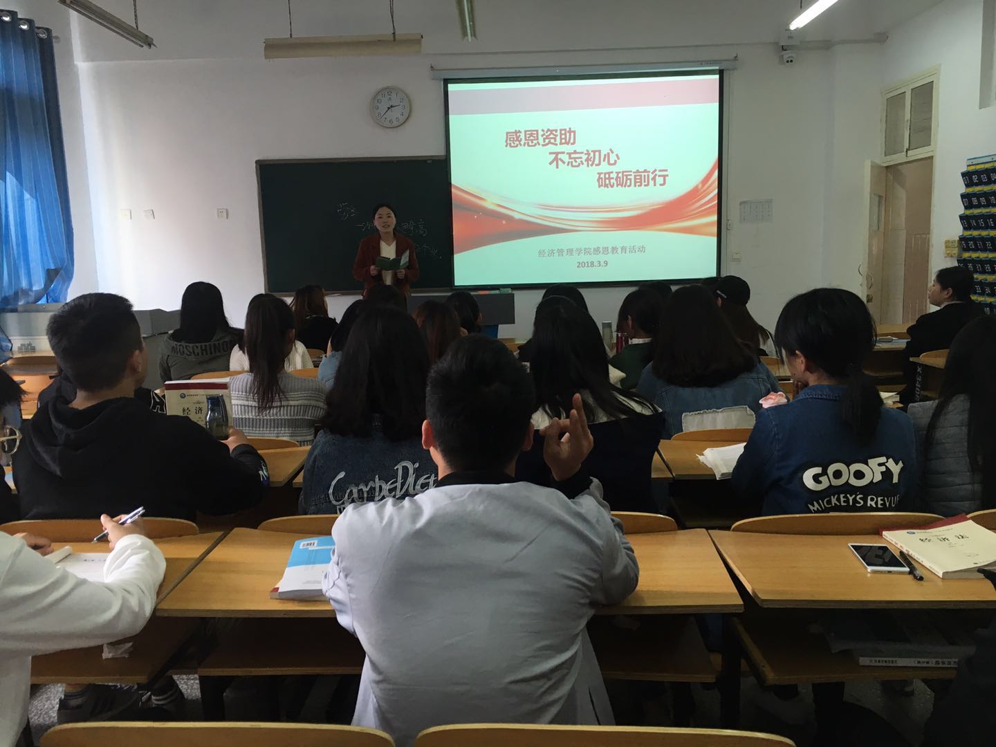 经济管理学院一贯注重学院学生的诚信感恩教育,在学生享受资助政策的同时,也不忘开展各种形式的活动,对他们进行诚信感恩教育。为鼓励受资助学生珍惜机会、勇于实践、全面发展,培养受资助学生自强感恩意识,学院于2018年3月9日举办受资助学生励志感恩教育系列活动。