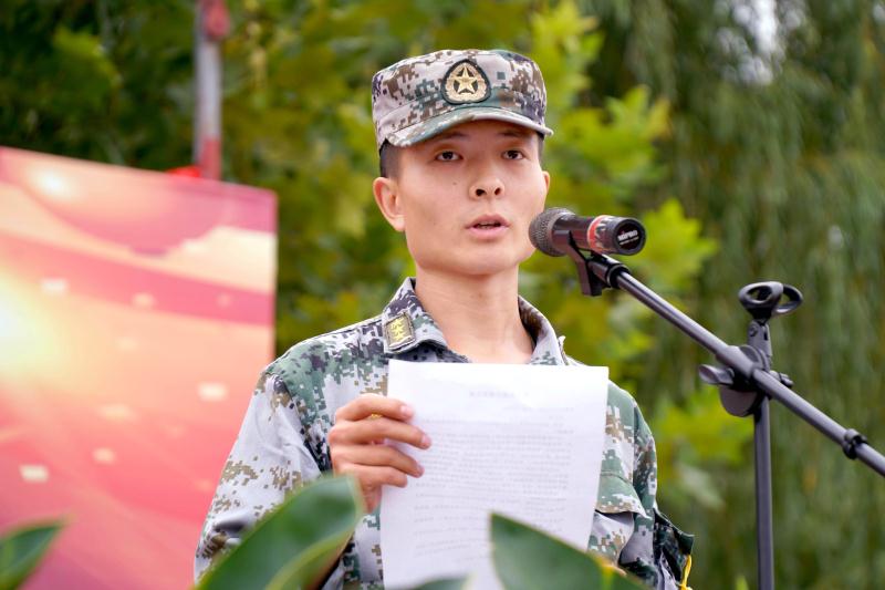 参训教官代表宋少帅、刘帅代表承训教官发言,就军训标准和要求向全体2018级新生做了训前说明。