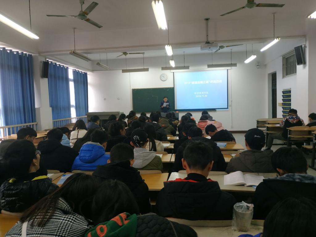 2018年11月30日,经管学院举办了“诚信自强之星”评选活动,参与此次活动的均为家庭经济困难学生,他们不会因为家庭经济困难而失去前进的动力,他们中也有人冬天凌晨五点起床去背书,没有什么能阻挡他们前进的脚步。“穷人的孩子早当家”这句话用在他们身上再合适不过了。假期里别的孩子在玩,他们却在利用这个时间去打工,去减轻家庭经济负担;他们中也有早早就成为家里顶梁柱的人,承担起照顾父亲的任务,监督弟弟妹妹完成学业。有一位同学在路边刮坏了别人的车子,修车费对于一个学生来说是一笔不小的费用,但是他没有选择离开,而是主动与车主联系,选择耐心等待车主的到来;还有一位同学在工作时遇到了顾客迟到现象,这位同学没有抱怨而是选择耐心等待了顾客3个小时,只因为他们内心那份对诚信的坚守。
