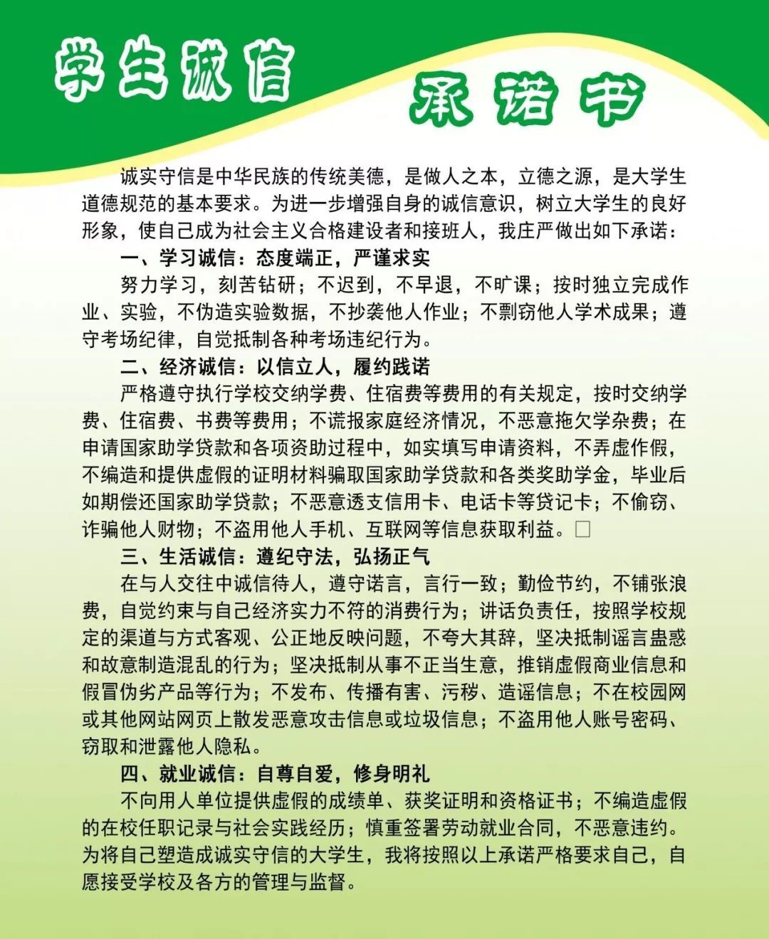 三、举办“我承诺、我践行”诚信签名活动