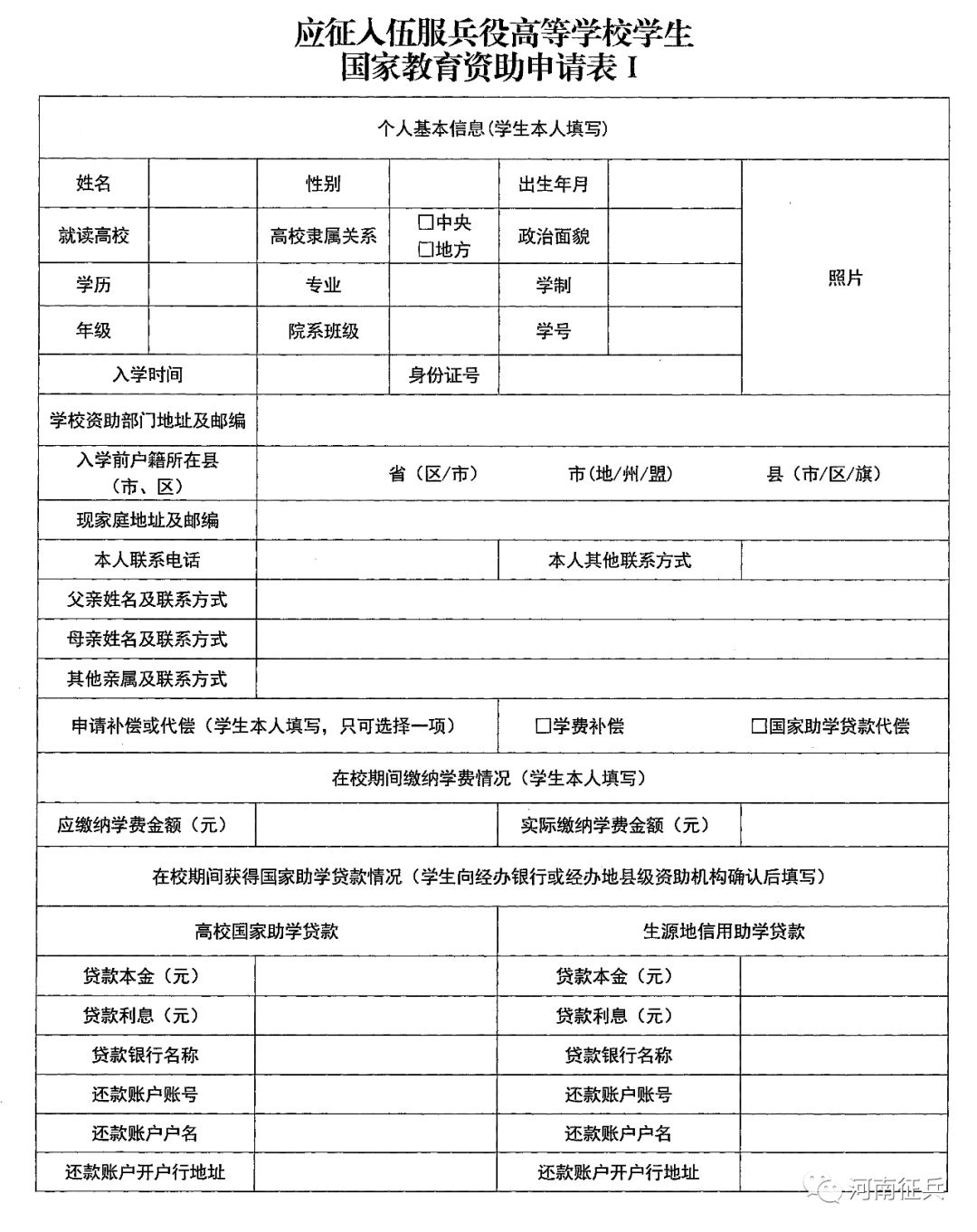 ( 四)学生将《申请表 I 》原件和《入伍通知书》复印件,寄送至原就读高校学生资助管理部门。 ( 五)高校学生资助管理部门在收到学生寄送的《申请表 I 》原件和《入伍通知书》复印件后,对各项内容进行复核,符合条件的,及时向学生进行学费补偿或国家助学贷款代偿。 对于办理高校国家助学贷款的学生,由高校按照还款计划,一次性向银行偿还学生高校国家助学贷款本息,并将银行开具的偿还贷款票据交寄学生本人或其家长。 偿还全部贷款后如有剩余资金,汇至学生指定的地址或账户。