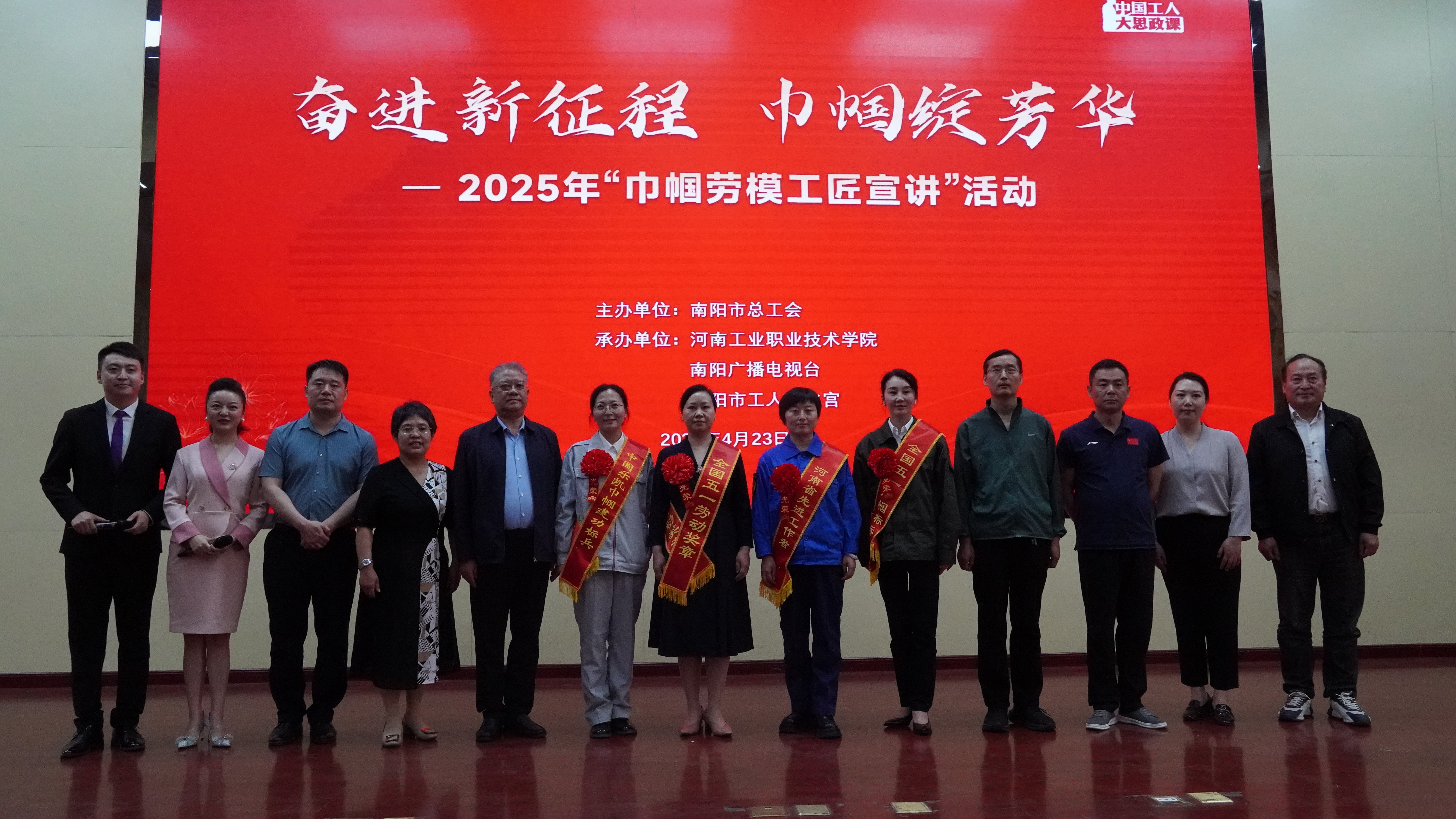 4月23日下午,学校和南阳市总工会联合组织开展的“奋进新征程 巾帼绽芳华”巾帼劳模工匠宣讲活动顺利举办,为师生们带来了一场感人至深的精神盛宴。南阳市总工会党组成员、副主席金少鹏和宣教部部长雷鸣,我校工会、团委等部门负责人出席活动,学校各创新工作室负责同志和学生代表共366人参加了宣讲活动。